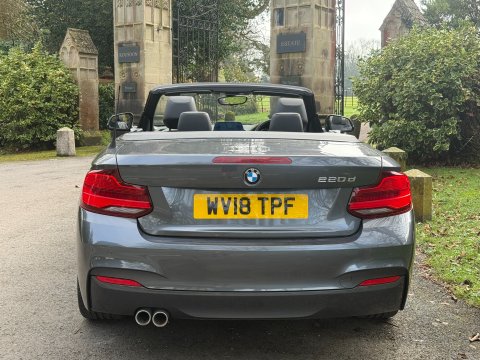 Fantastic value BMW 220D M Sport Convertible finished in Metallic Mineral Grey with Dakota Leather Interior trim. With only two previous owners and a mere 42,700 miles on the clock, this Euro 6 compliant diesel model offers a compelling blend of performance and practicality. The M Sport trim enhances its dynamic appeal, while the Dakota Leather interior in Black with Black accents provides a touch of luxury. Comfort is further assured with a heated steering wheel, heated seats, and automatic single zone air conditioning, all part of the Convertible Comfort Package. Parking is made easier thanks to rear Park Distance Control. Other desirable features included BMW Business Media Pack, LED Headlights, Cruise Control, DAB, Bluetooth Connectivity and much more. , Supplied with Fully Service with Full Pre Delivery Inspection, MOT until January 2027 and 3 Months Warranty. Full Service History, Serviced @ 14k, 22k, 32k, 42k. We are open Monday to Friday 9am to 5pm, WEEKEND'S ARE NOW BY APPOINTMENT ONLY. NATIONWIDE DELIVERY AVAILABLE. Our local train station is Axminster and we are happy to pick up customers travelling via train. Part Exchange a Pleasure. Credit Cards Accepted only up to £1000. Flexible Finance Packages Available, Our vehicles are supplied with 3 Months Warranty, Please ask about our fantastic extended warranty deals. ROUSDON CAR CENTRE LTD supplying quality vehicles since 2003. Customers purchasing with finance from CF247 and certain other 3rd Party Finance Providers will pay additional £300 to cover the charge they pass onto ourselves for customers using their finance (only applicable if the finance company is charging us),